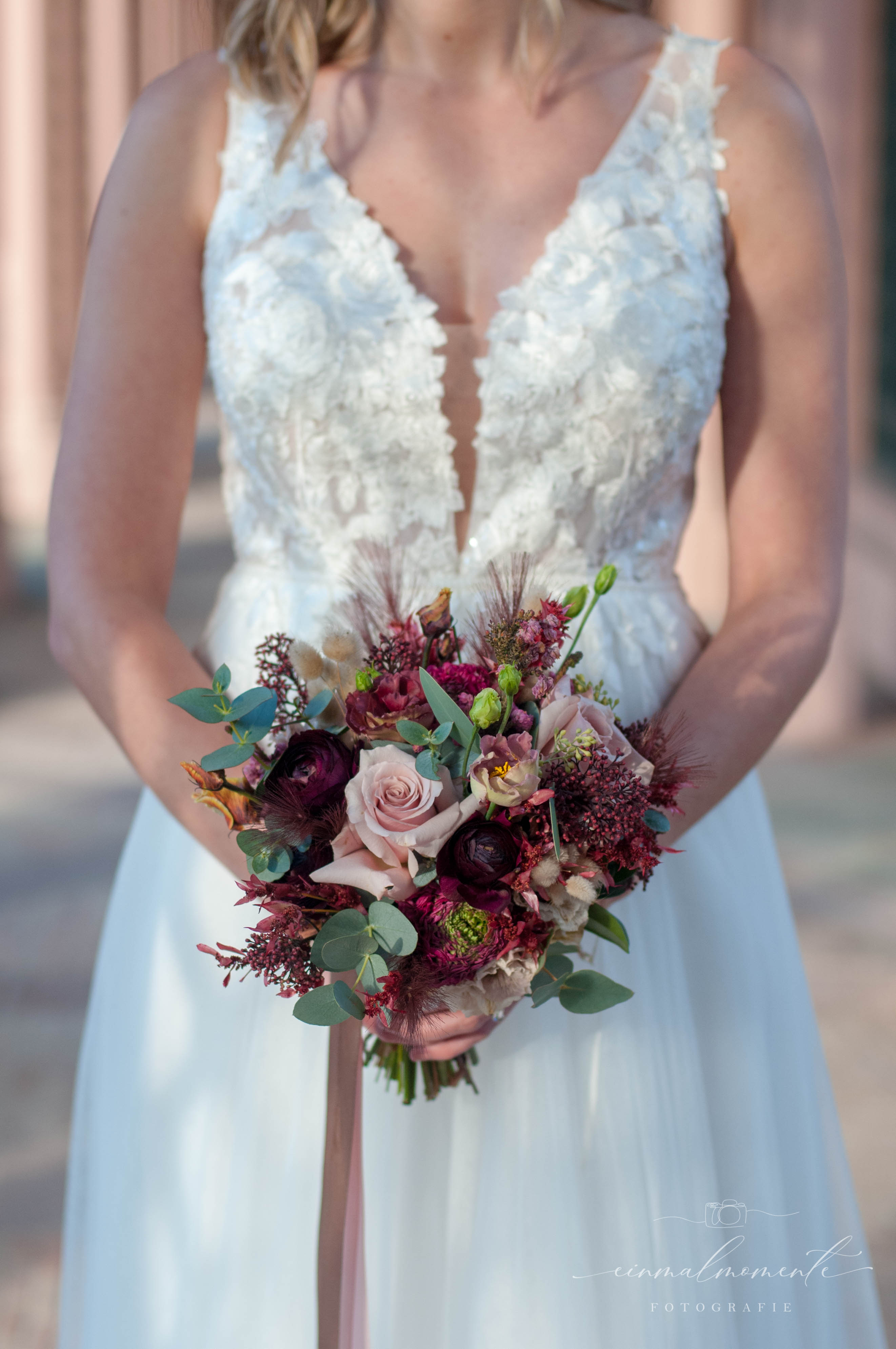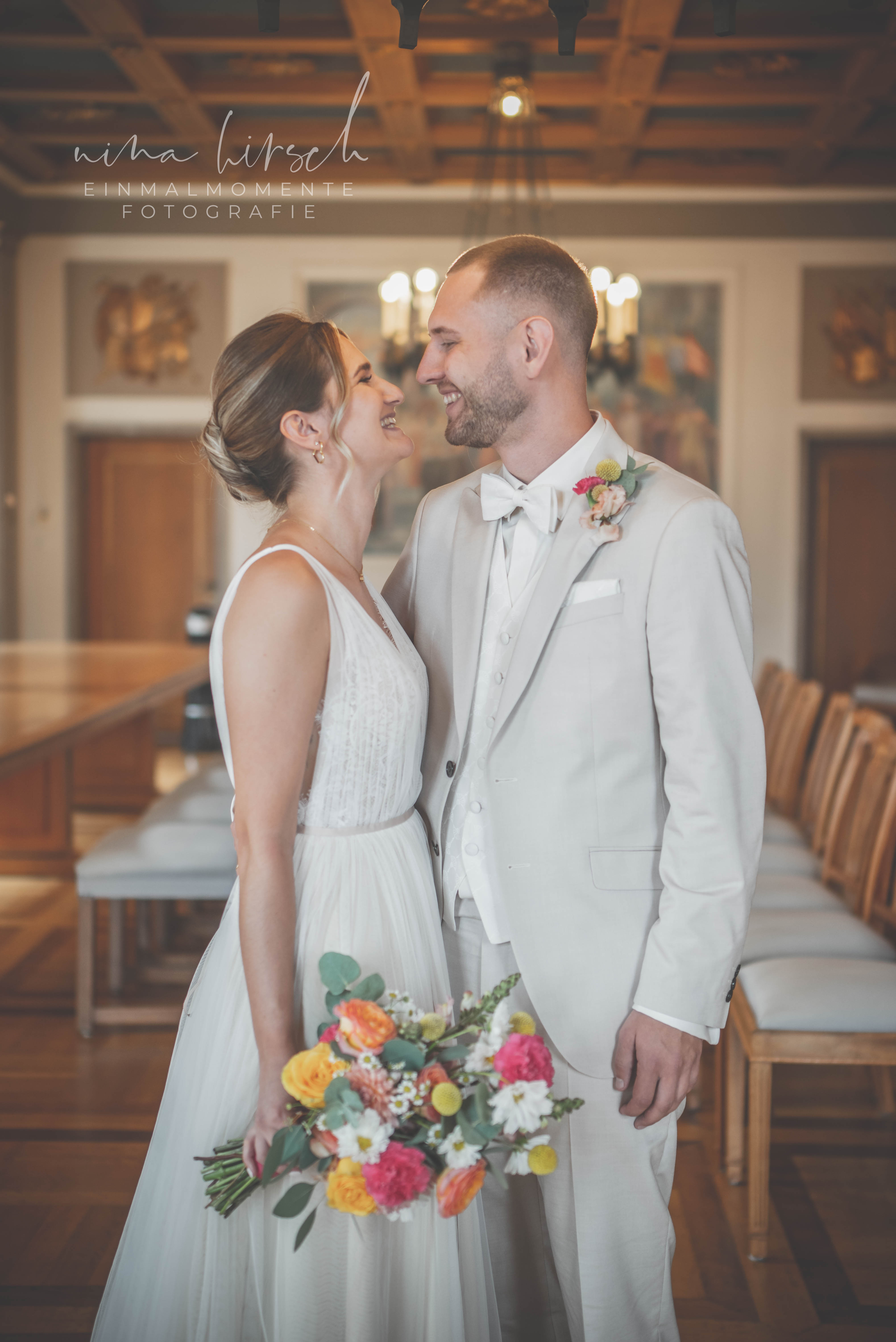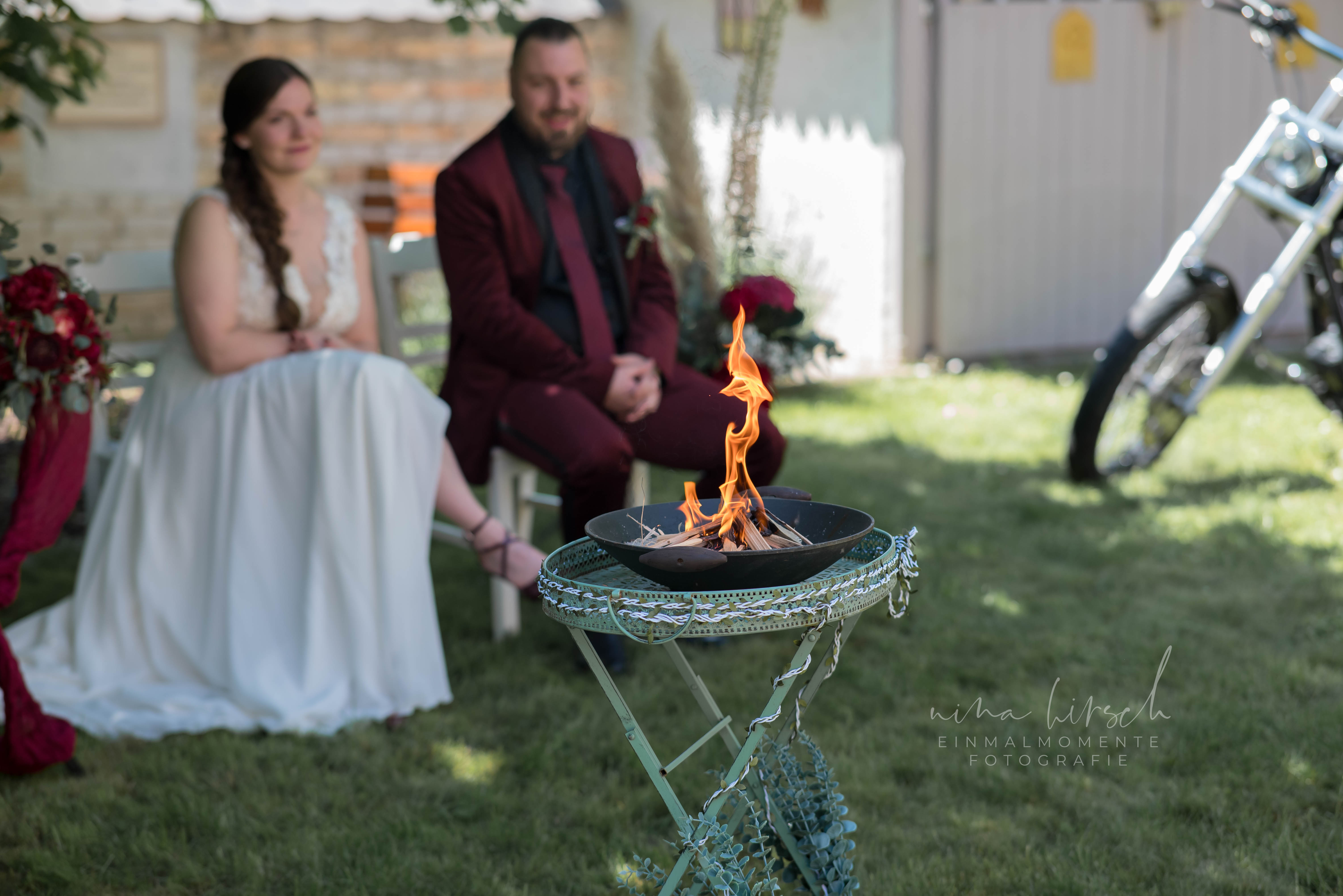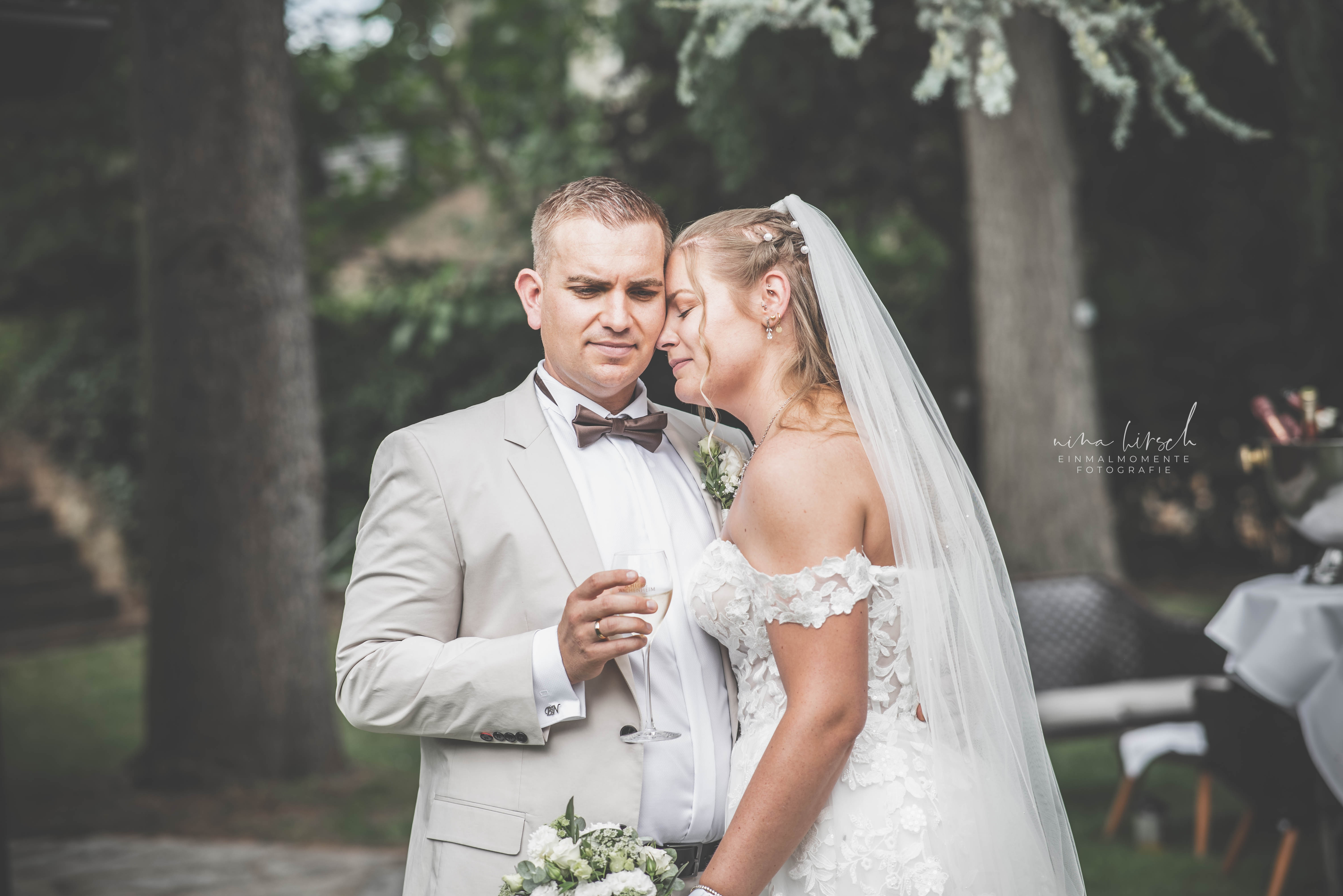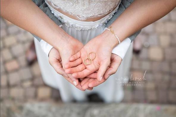 „Wenn wir unzählige weiße Haare auf dem Kopf und etliche Lachfalten im Gesicht haben, werden wir unsere Hochzeitsalben durchblättern oder diese unseren Enkelkindern zeigen. Wenn wir vor Freude dabei unsere Hände fest drücken und uns einen Kuss geben werden. Dann, genau dann werden wir dieses großartige Glück und diese wundervollen Momente wieder spüren, welche uns an diesem Tag ein Lächeln ins Gesicht gezaubert haben. So dankbar für all diese schönen bunten Einmalmomente und Erinnerungen an unseren schönsten Tag und unseren bisherigen gemeinsamen Weg.“