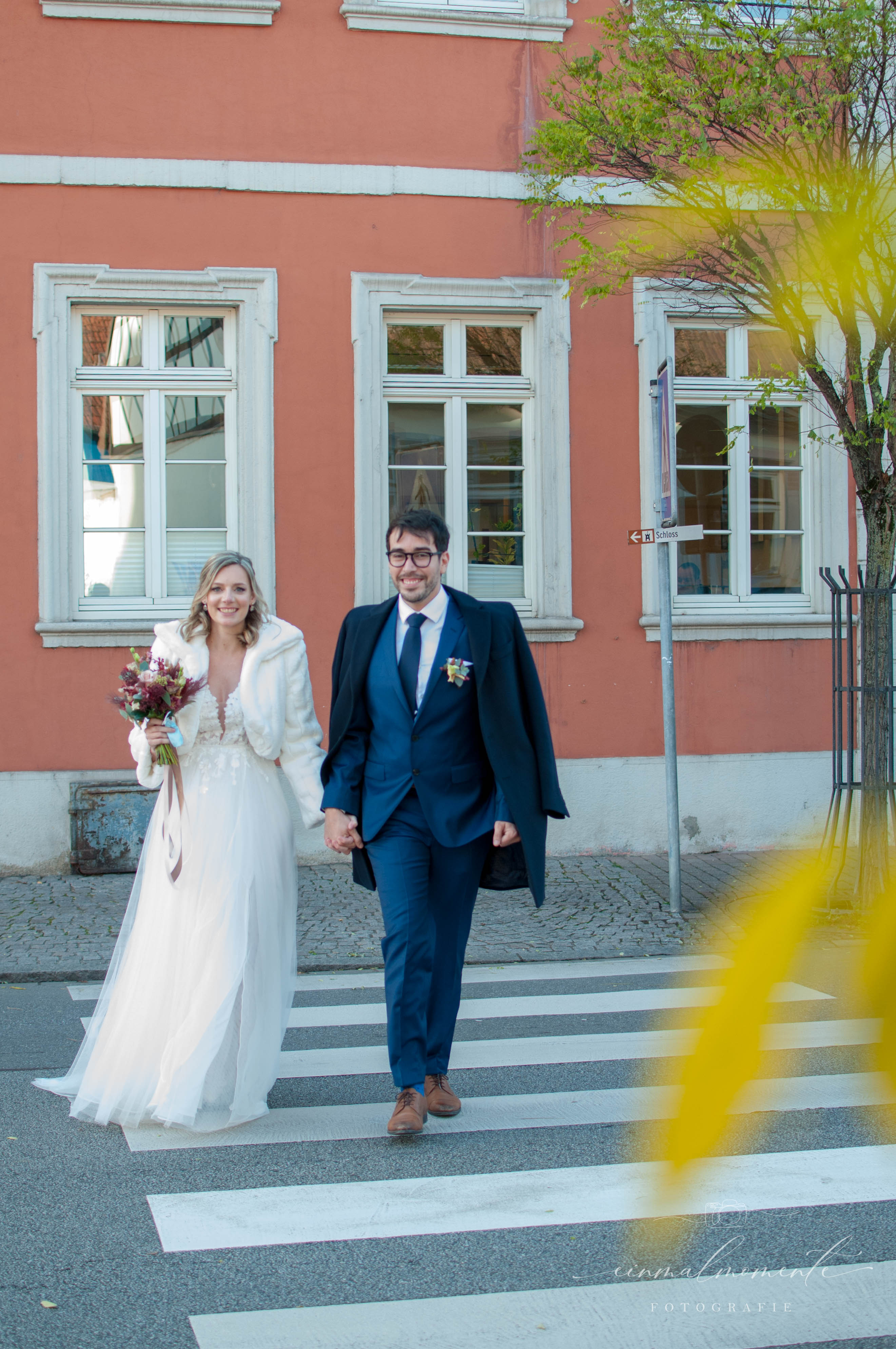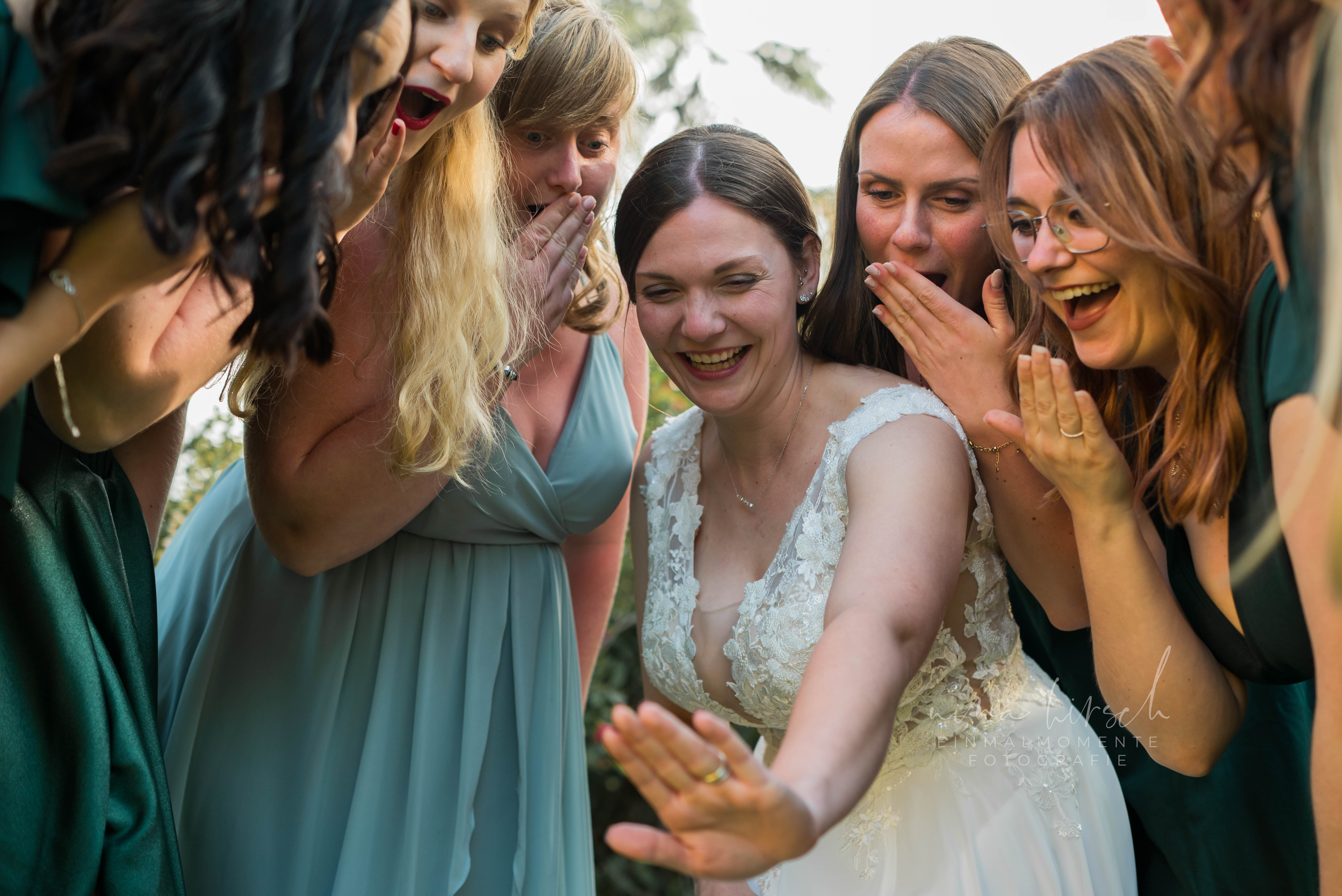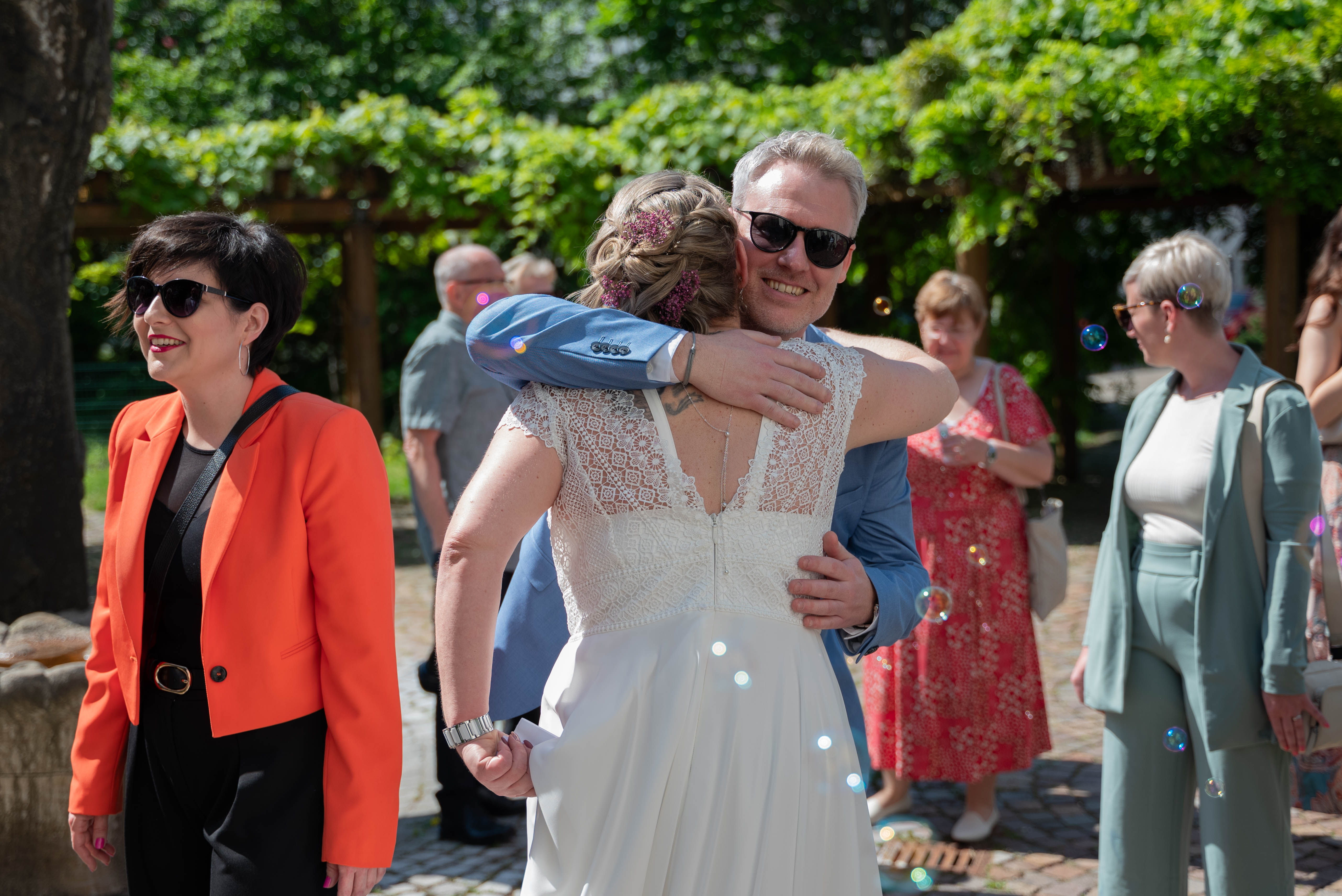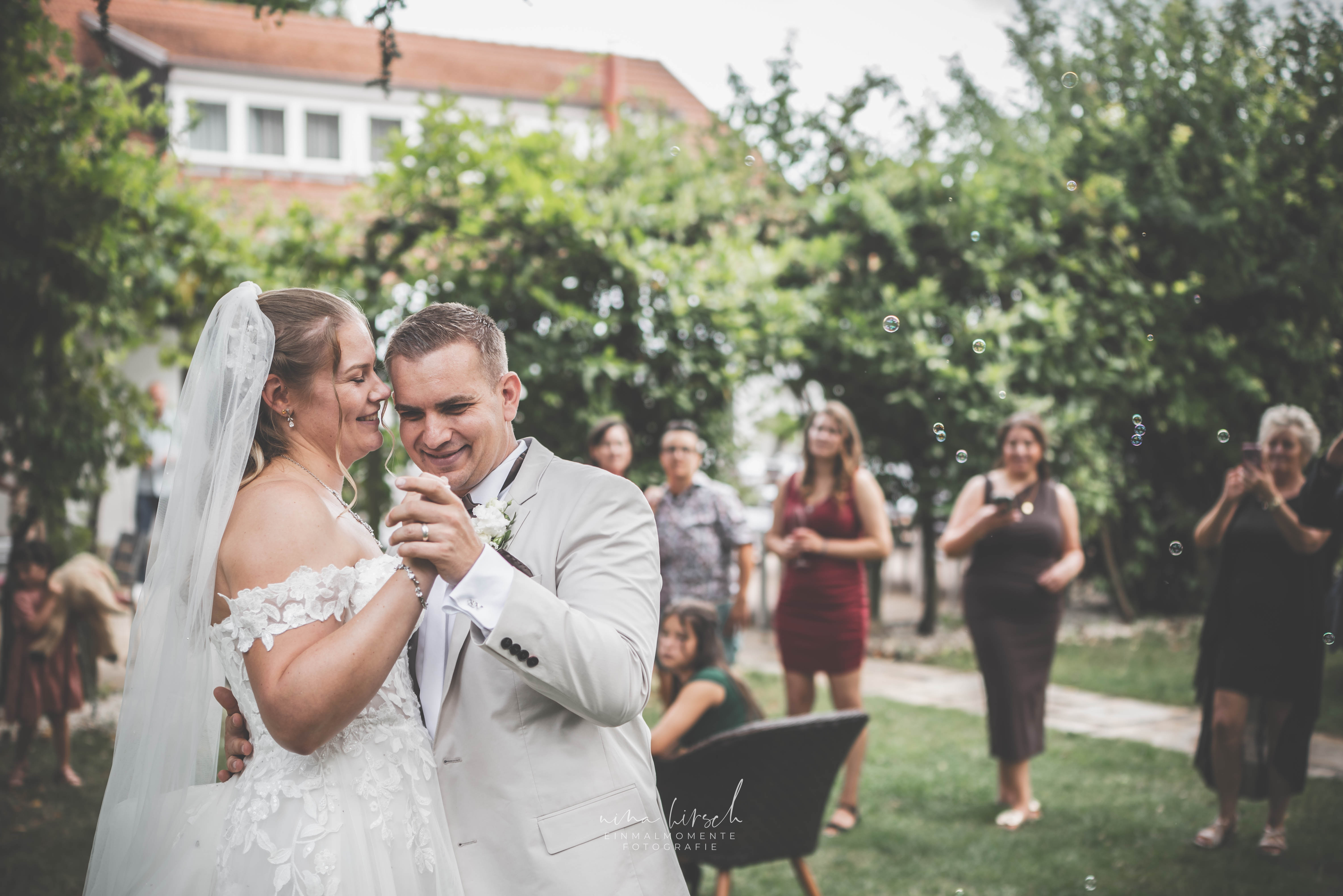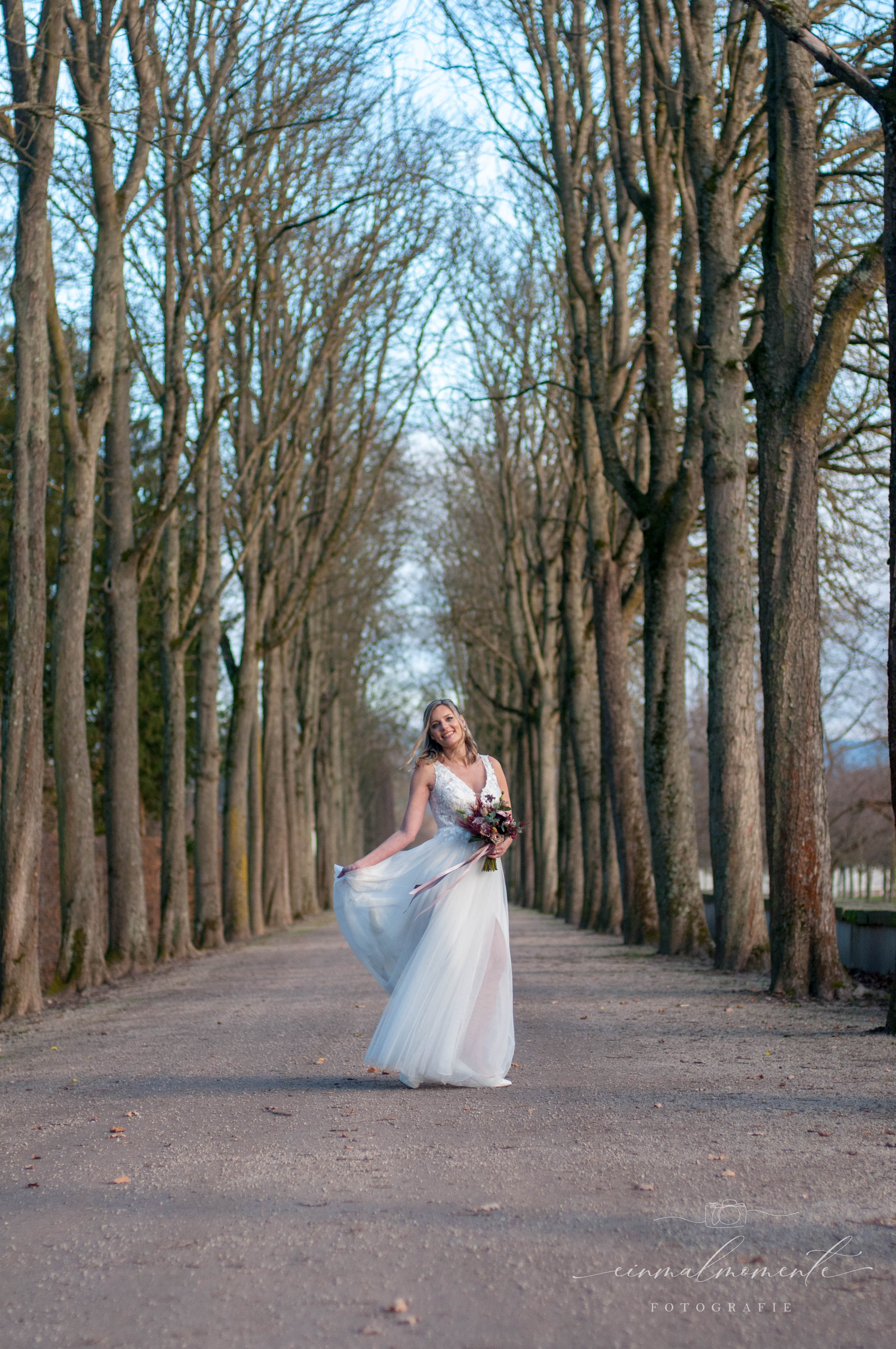 „Wenn wir unzählige weiße Haare auf dem Kopf und etliche Lachfalten im Gesicht haben, werden wir unsere Hochzeitsalben durchblättern oder diese unseren Enkelkindern zeigen. Wenn wir vor Freude dabei unsere Hände fest drücken und uns einen Kuss geben werden. Dann, genau dann werden wir dieses großartige Glück und diese wundervollen Momente wieder spüren, welche uns an diesem Tag ein Lächeln ins Gesicht gezaubert haben. So dankbar für all diese schönen bunten Einmalmomente und Erinnerungen an unseren schönsten Tag und unseren bisherigen gemeinsamen Weg.“