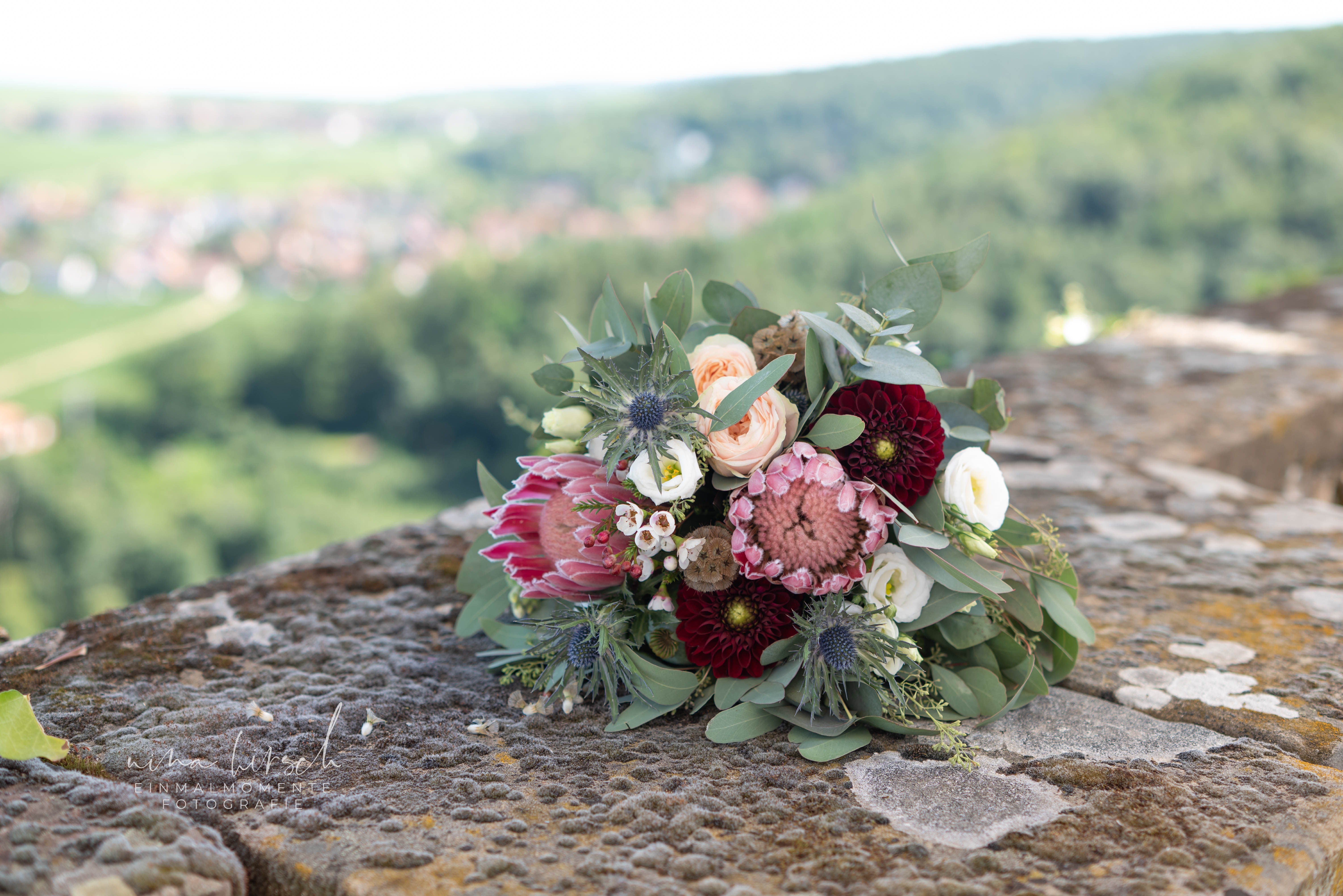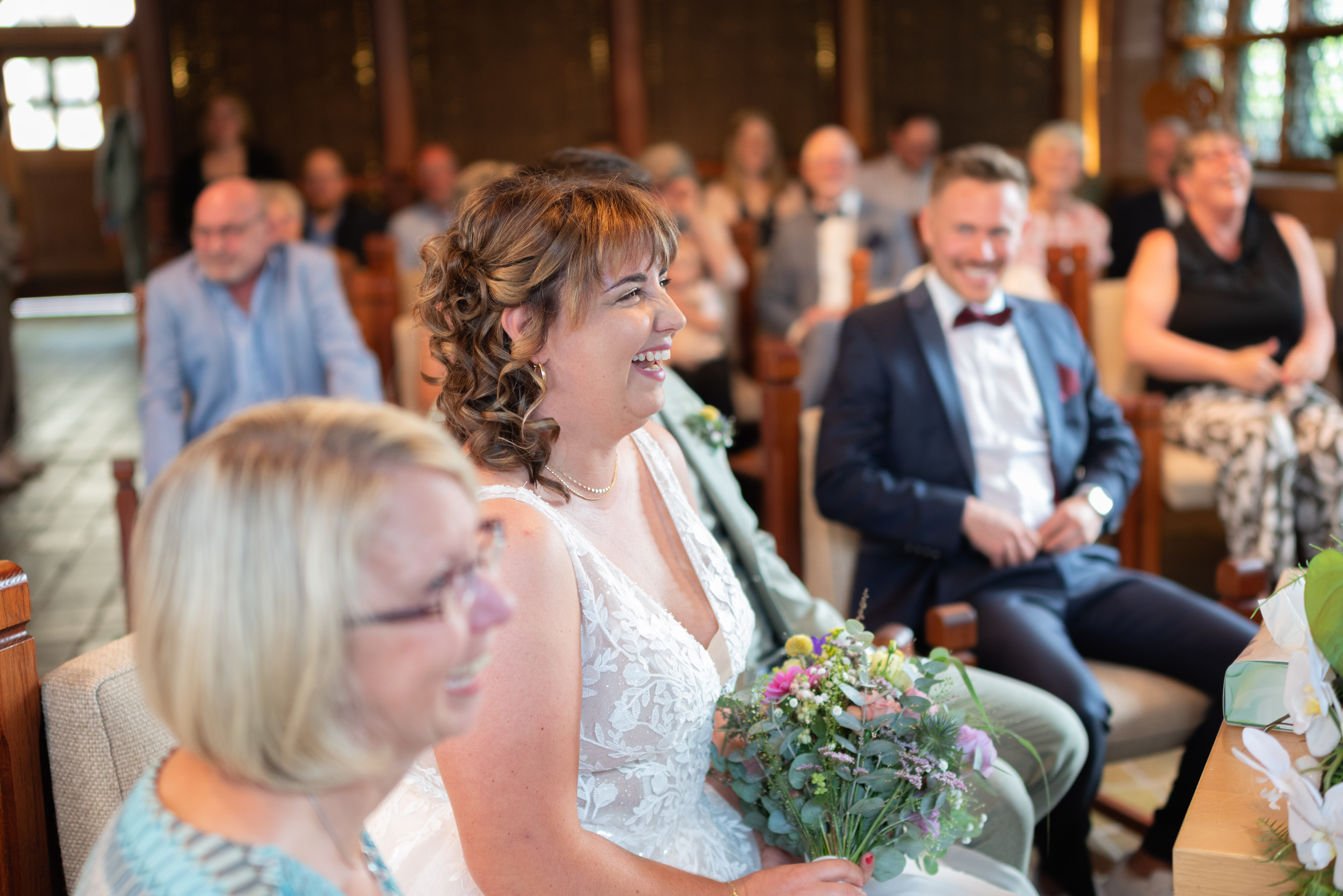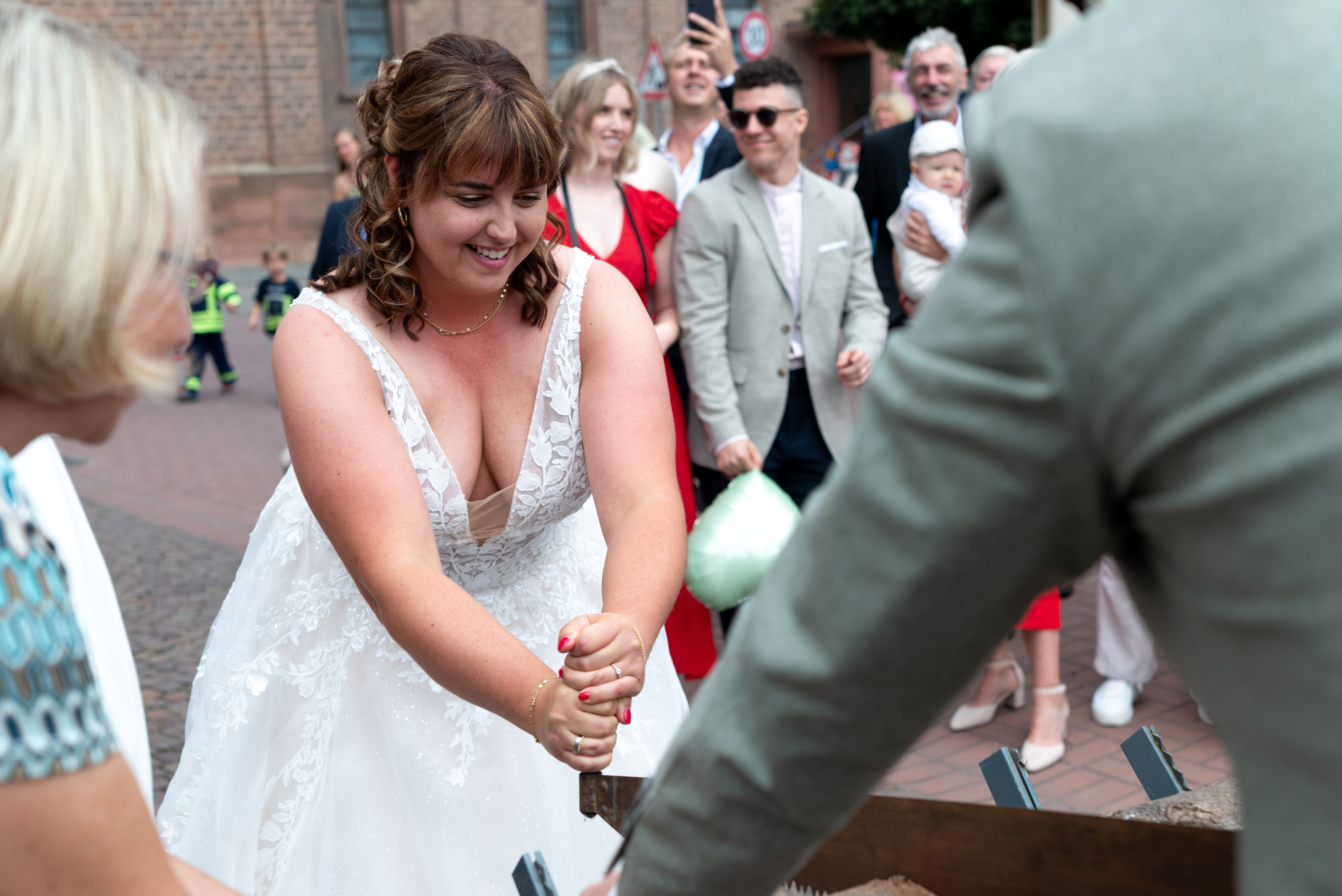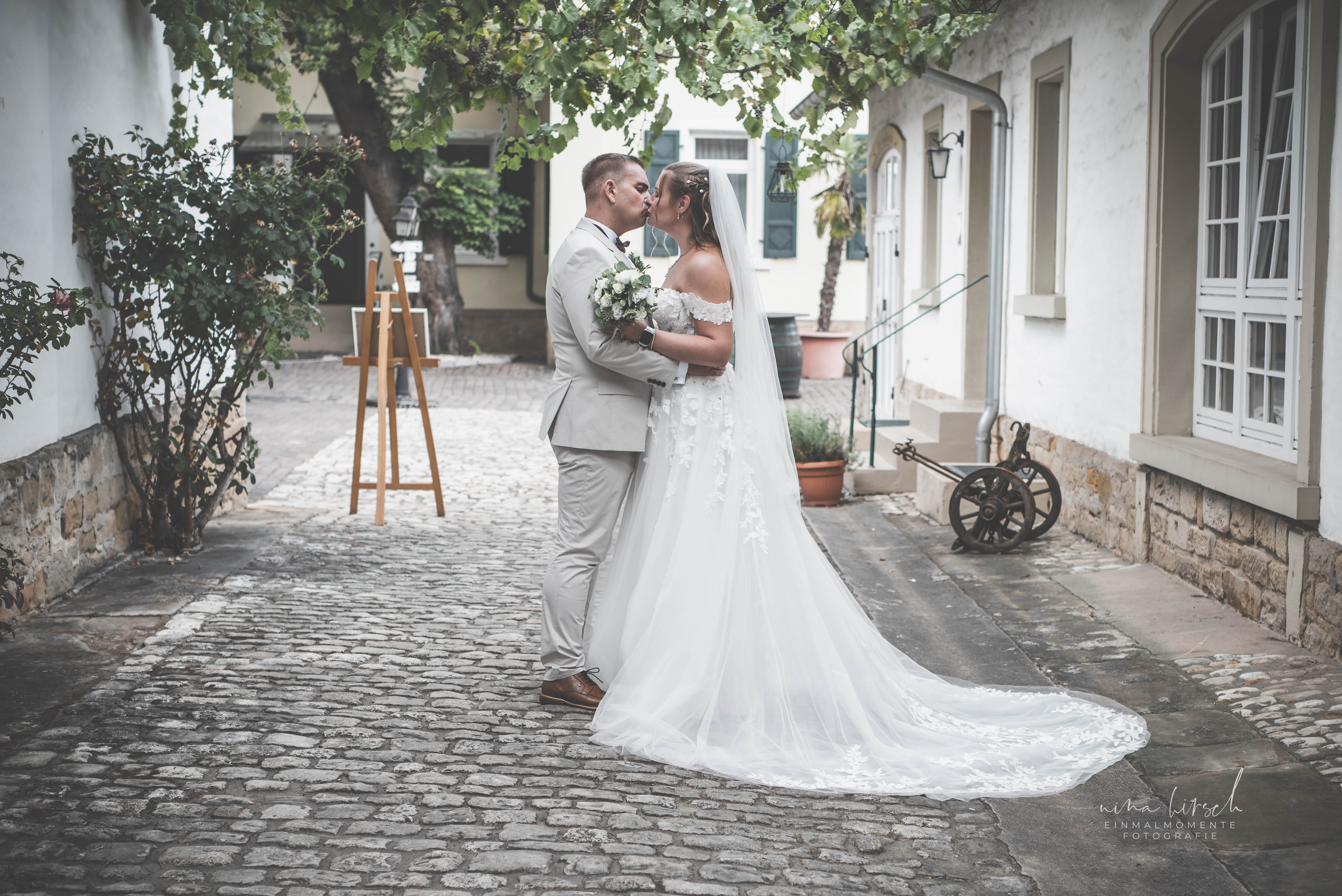 „Wenn wir unzählige weiße Haare auf dem Kopf und etliche Lachfalten im Gesicht haben, werden wir unsere Hochzeitsalben durchblättern oder diese unseren Enkelkindern zeigen. Wenn wir vor Freude dabei unsere Hände fest drücken und uns einen Kuss geben werden. Dann, genau dann werden wir dieses großartige Glück und diese wundervollen Momente wieder spüren, welche uns an diesem Tag ein Lächeln ins Gesicht gezaubert haben. So dankbar für all diese schönen bunten Einmalmomente und Erinnerungen an unseren schönsten Tag und unseren bisherigen gemeinsamen Weg.“